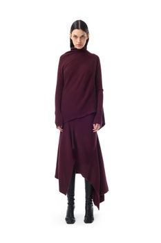 BURGUNDY CAP SLEEVE DRESS WITH LONG PUFF SKIRT