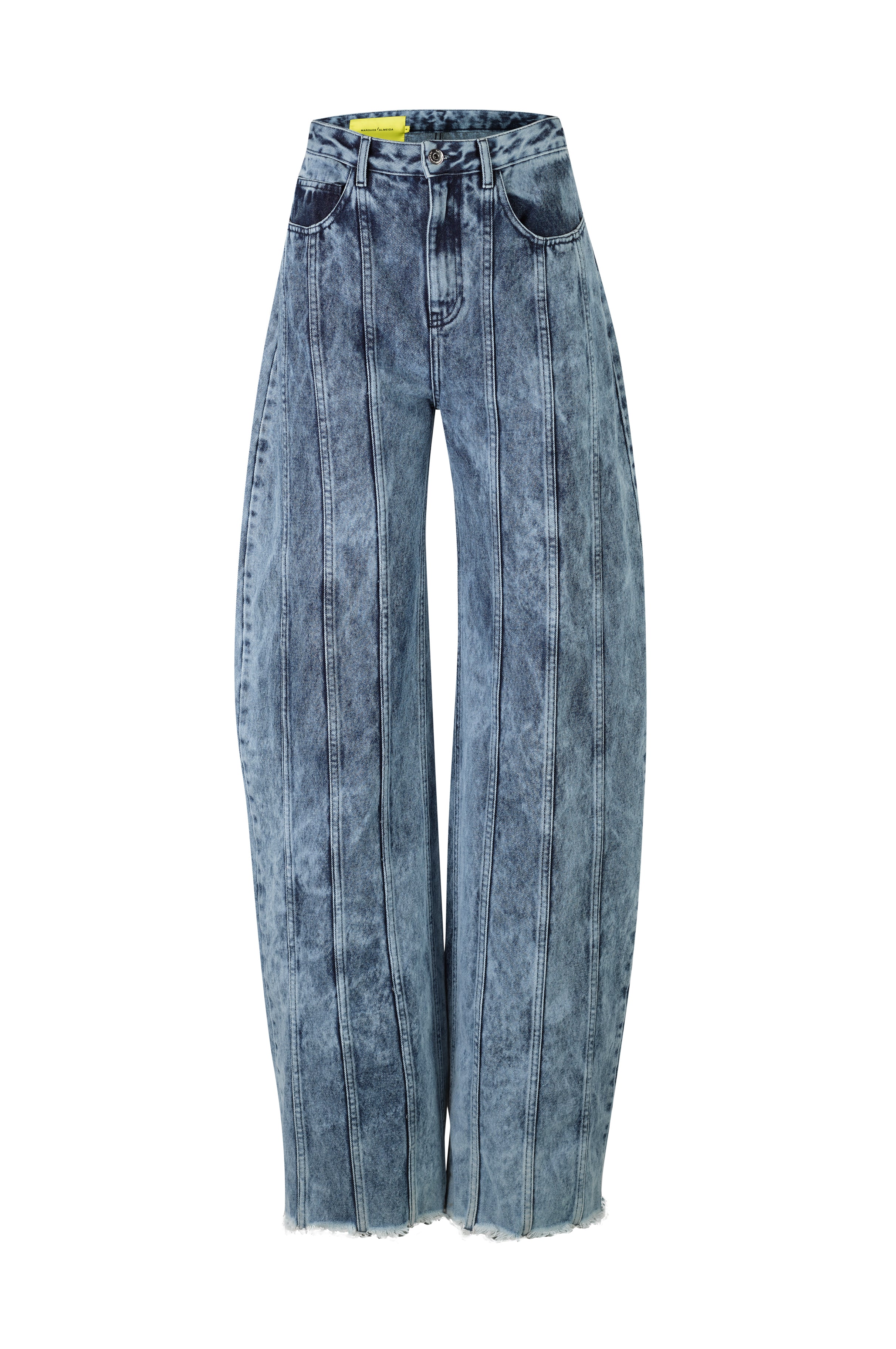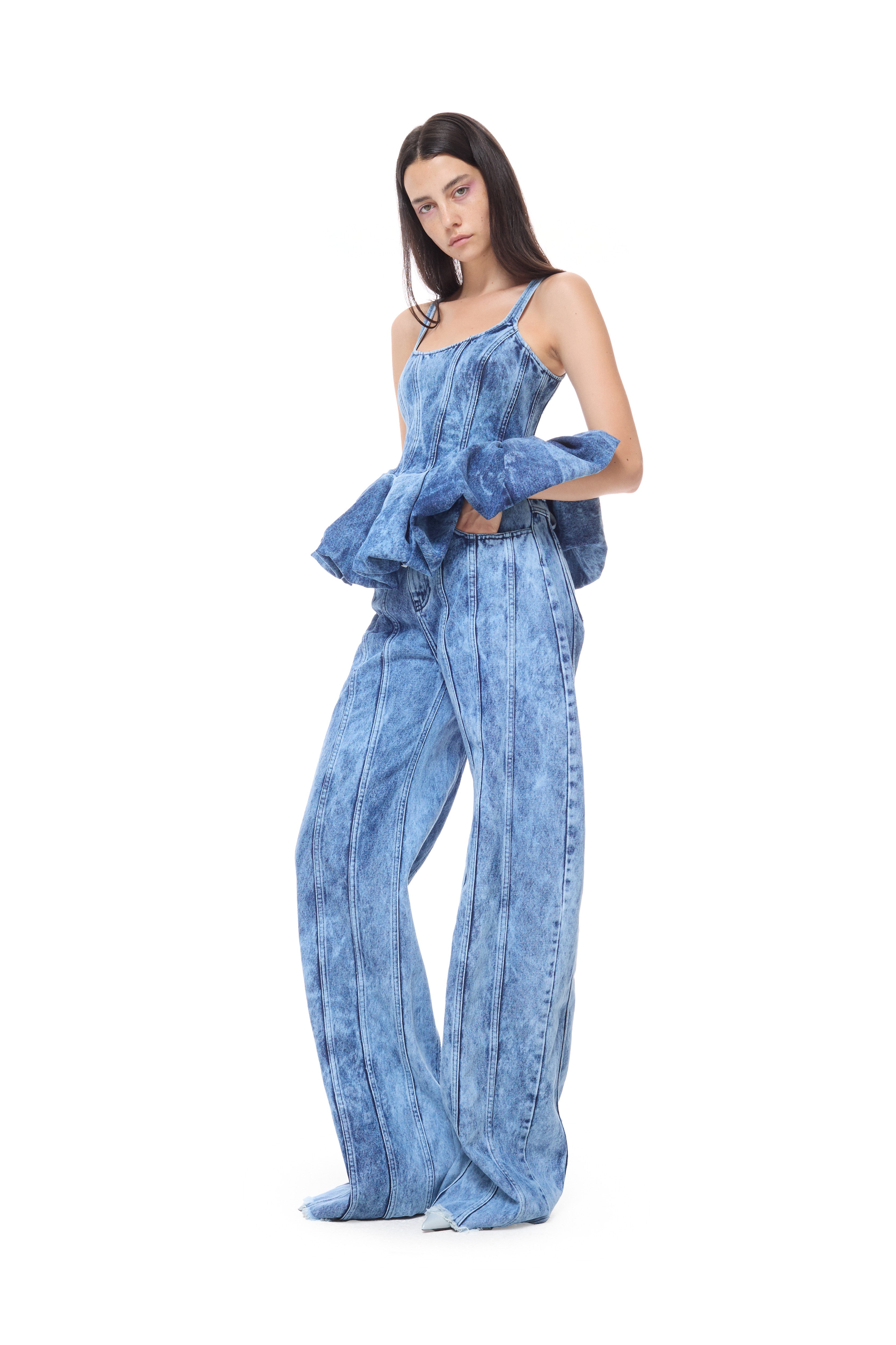 BLUE ACID WASH BOYFRIEND TROUSERS WITH SEAM LINES