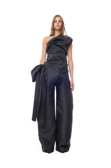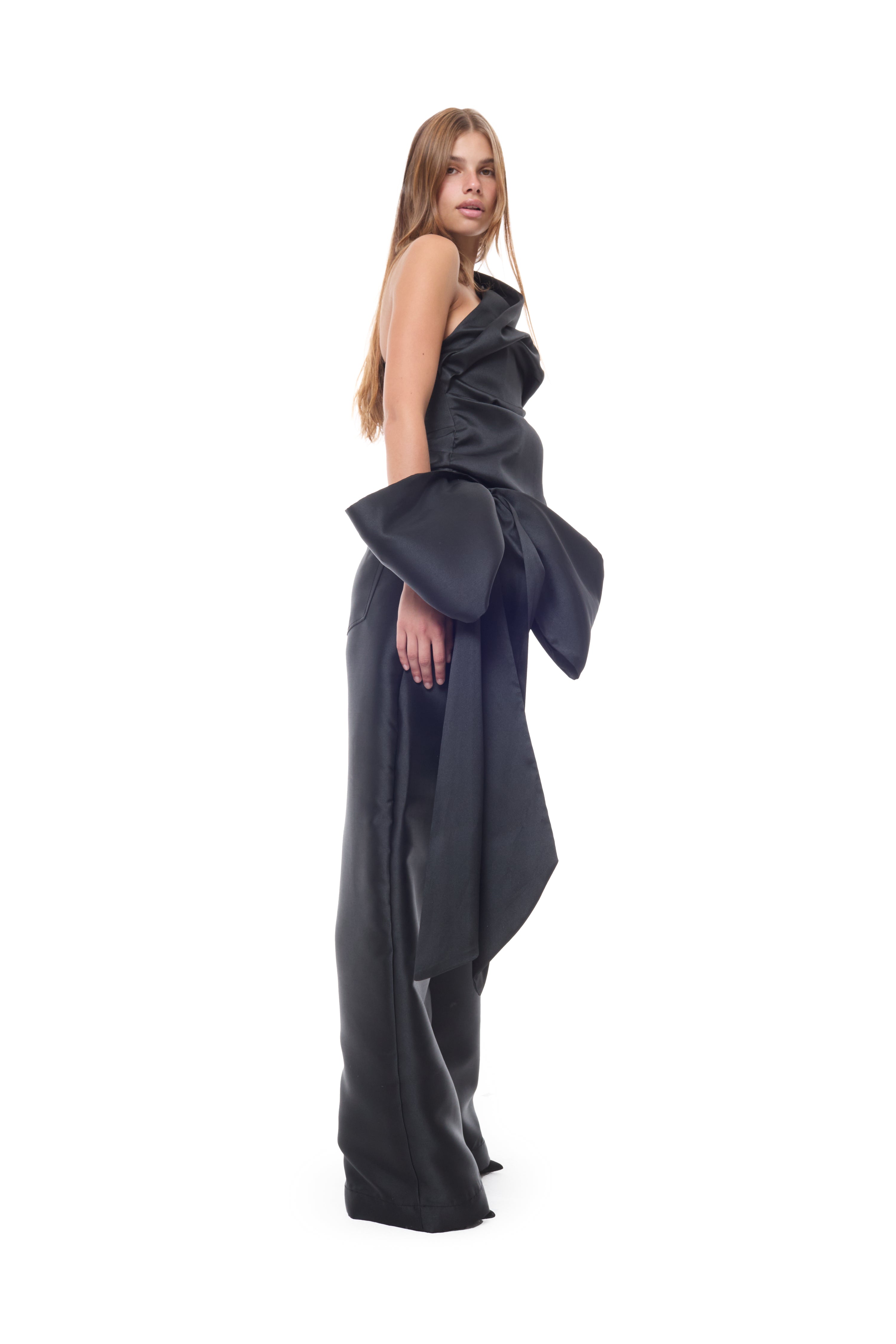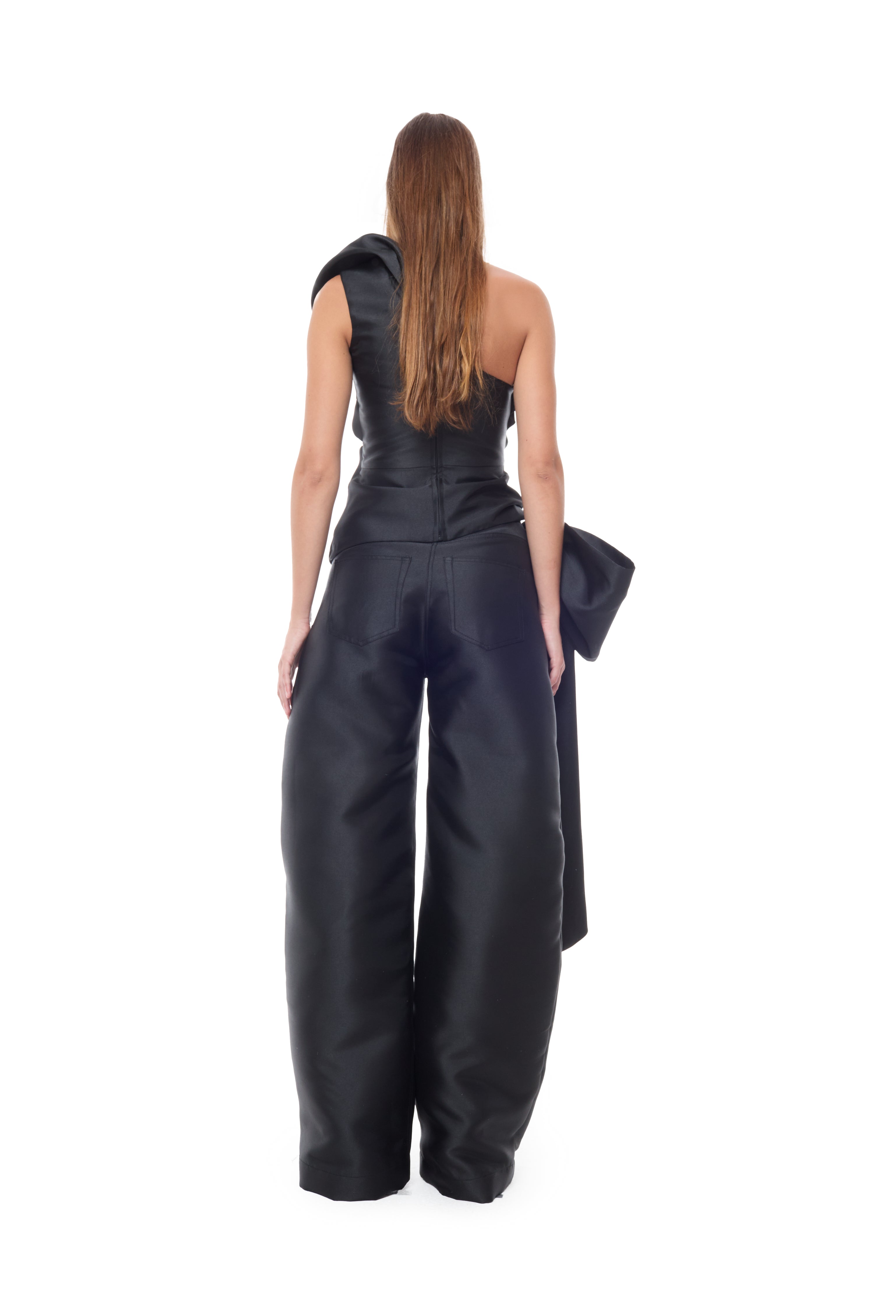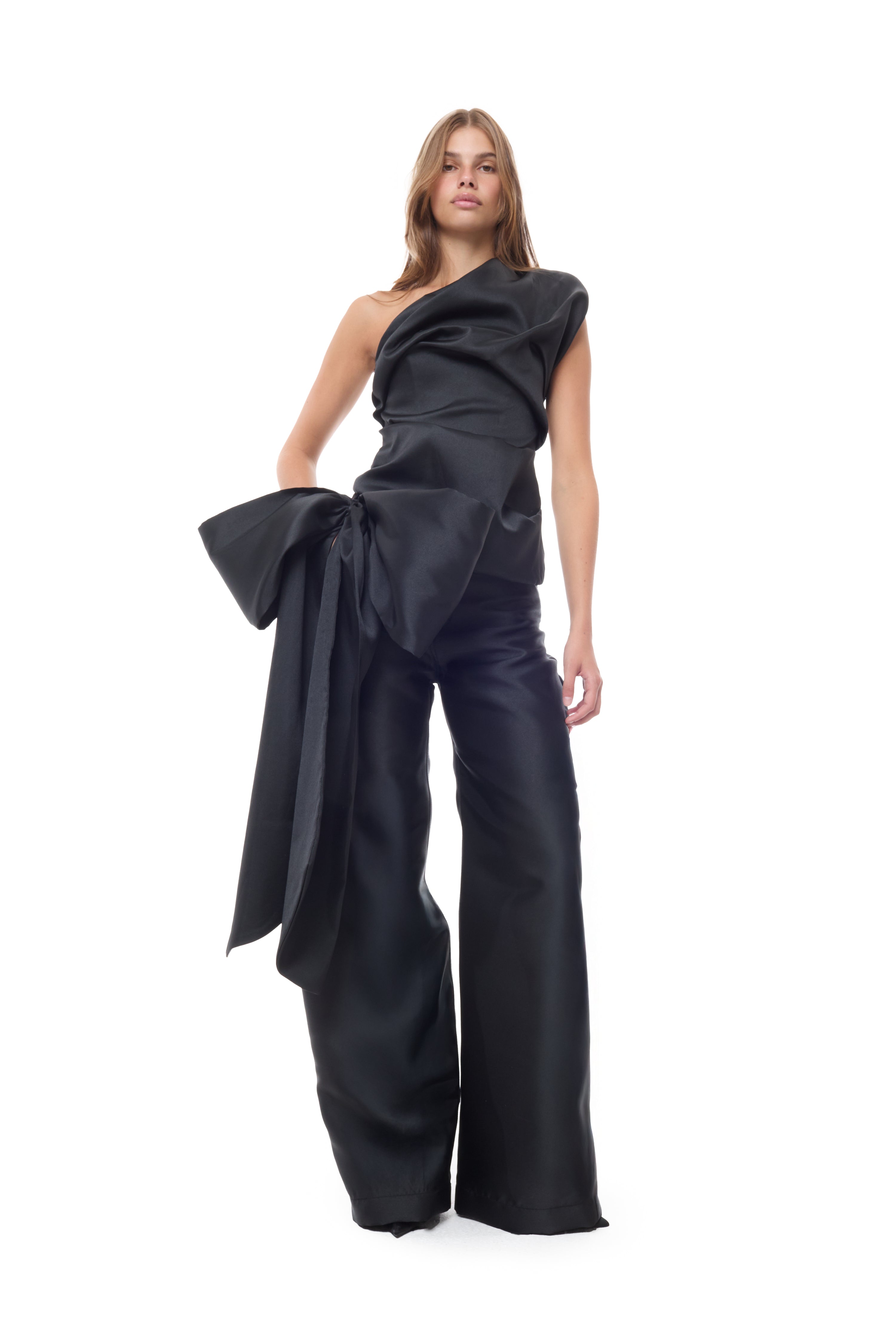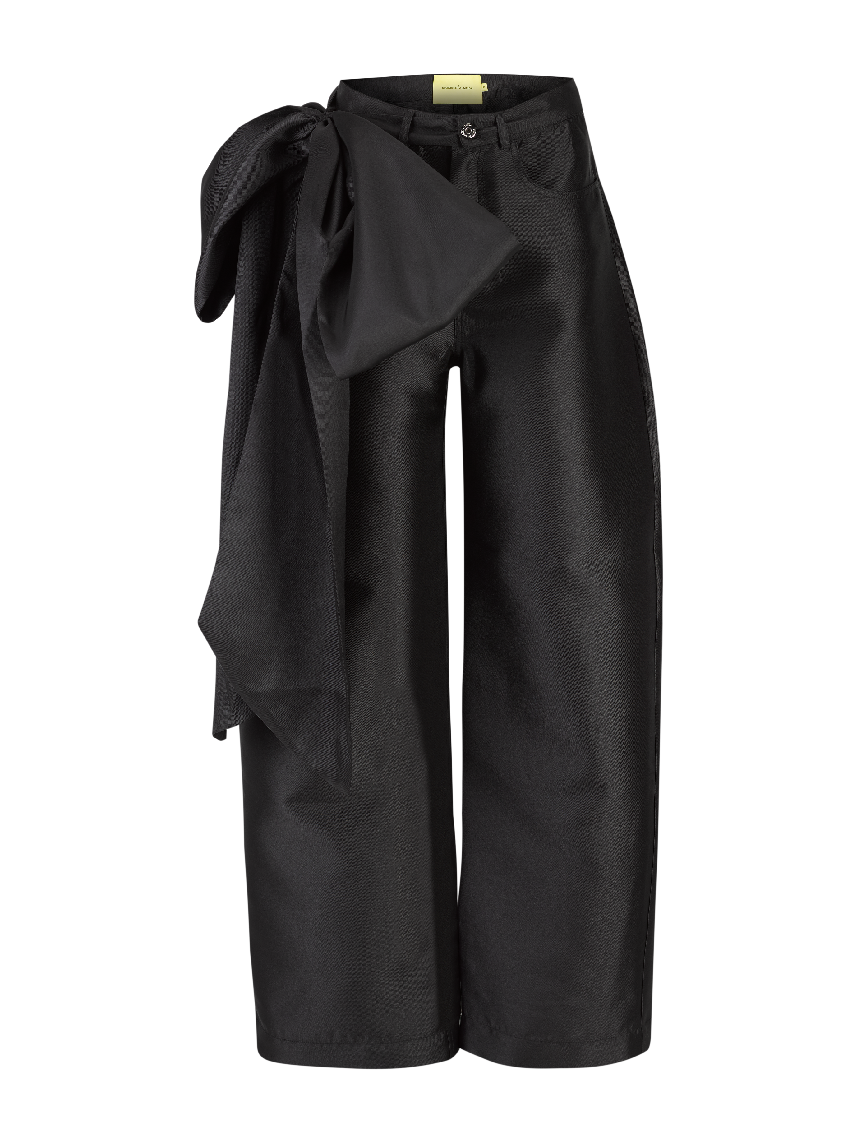 BLACK MIKADO BOYFRIEND TROUSERS WITH BOW BELT