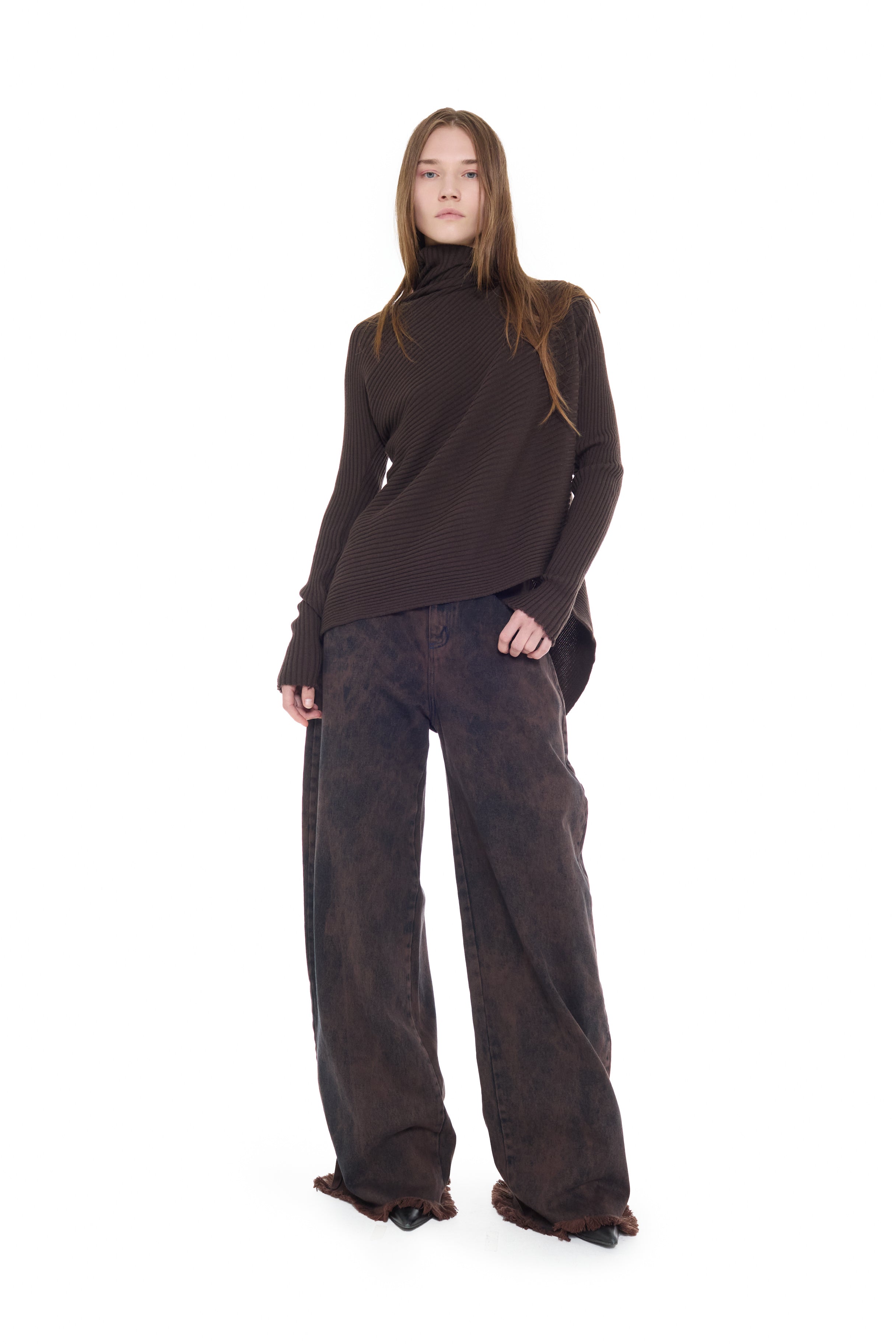 BROWN MERINO DRAPED JUMPER