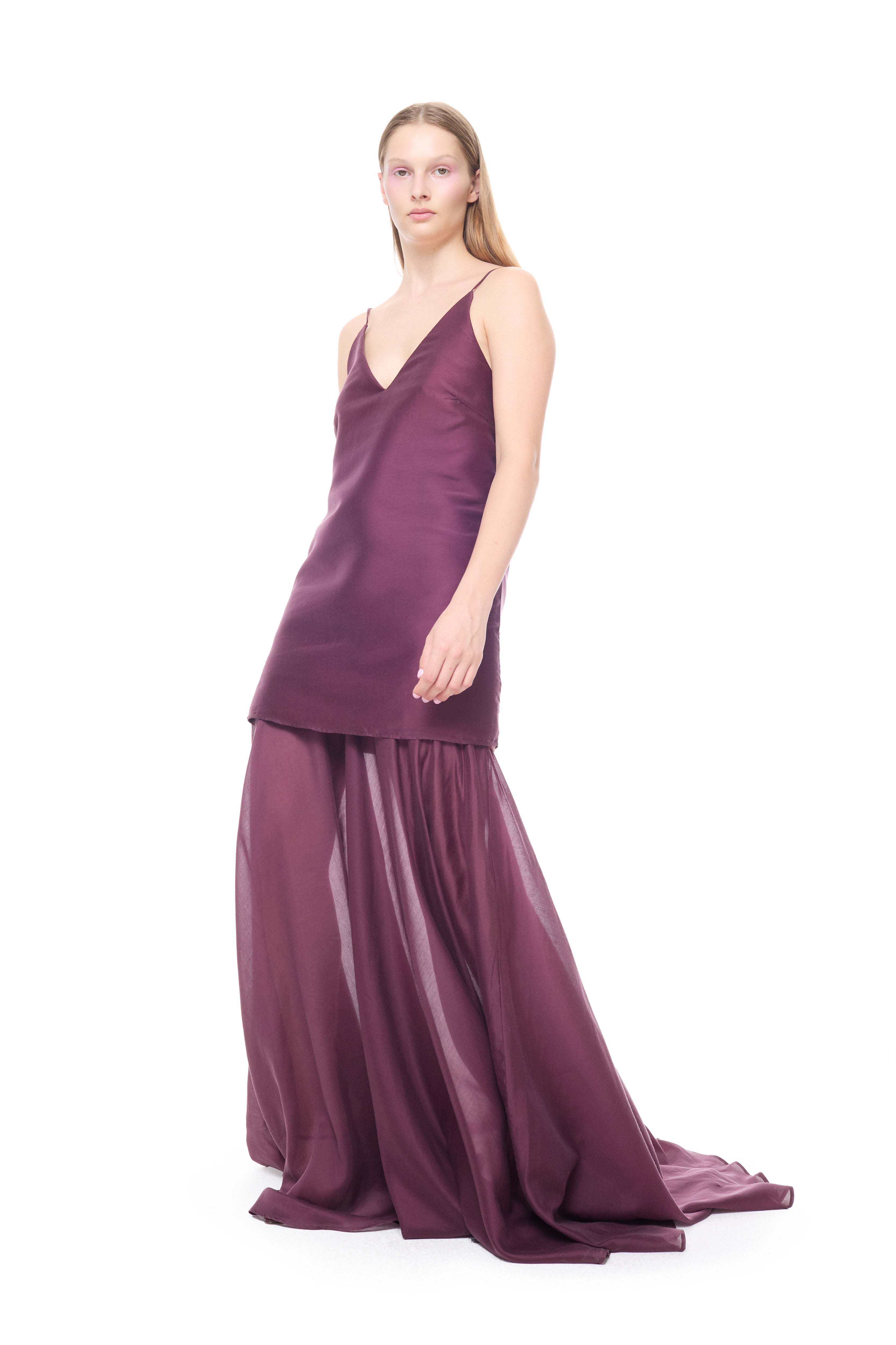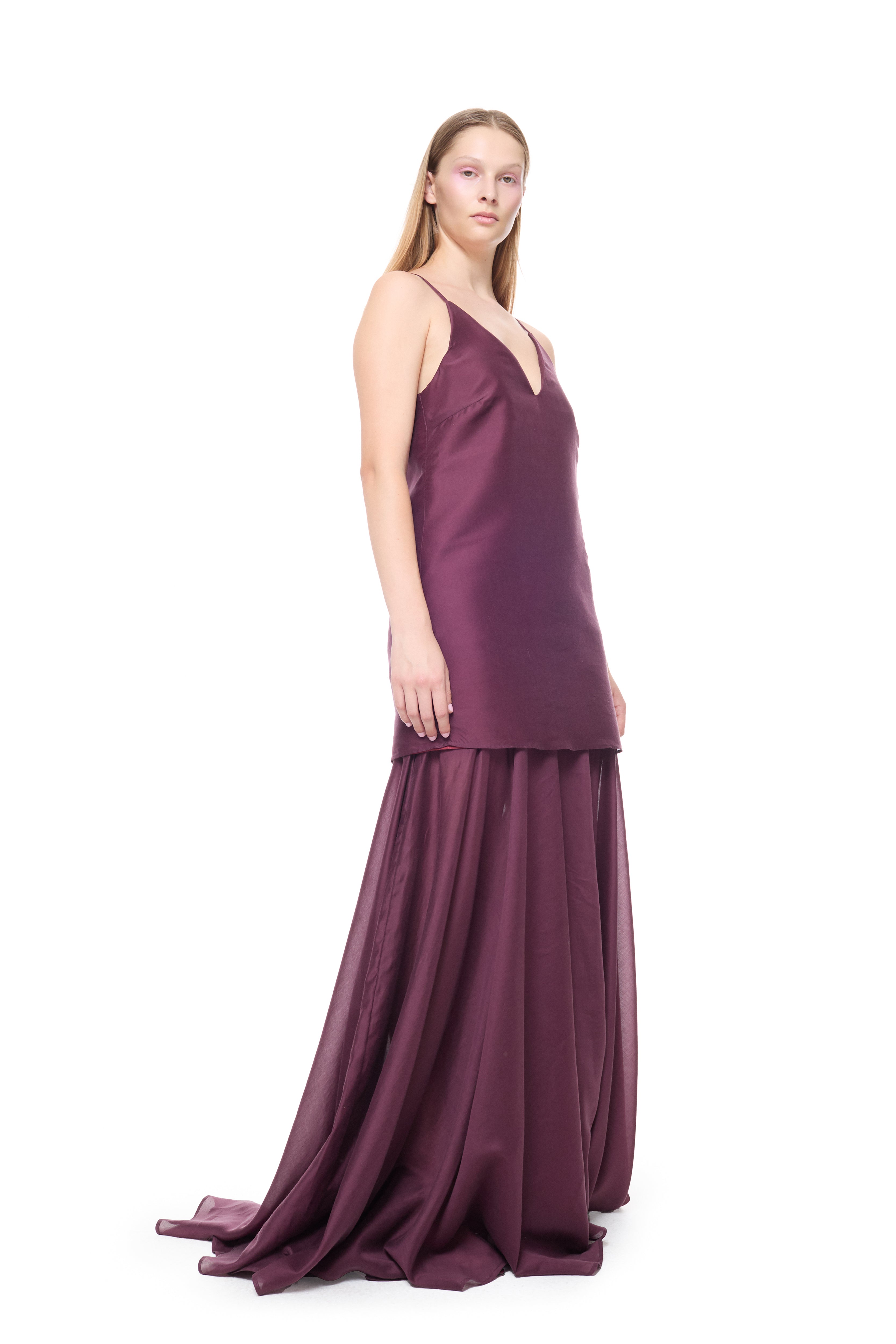 BURGUNDY DOUBLE LAYERED STRAPPY LONG DRESS