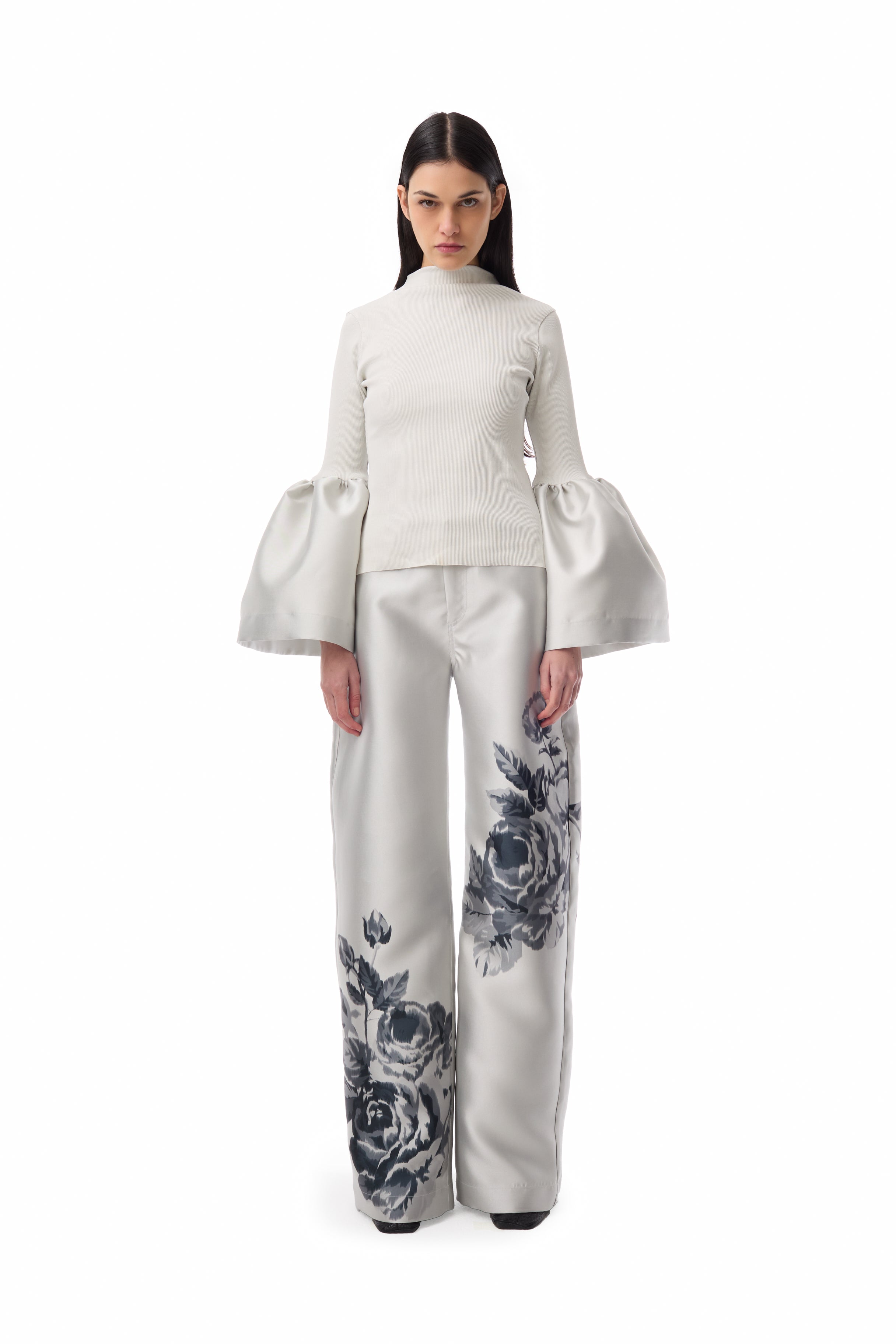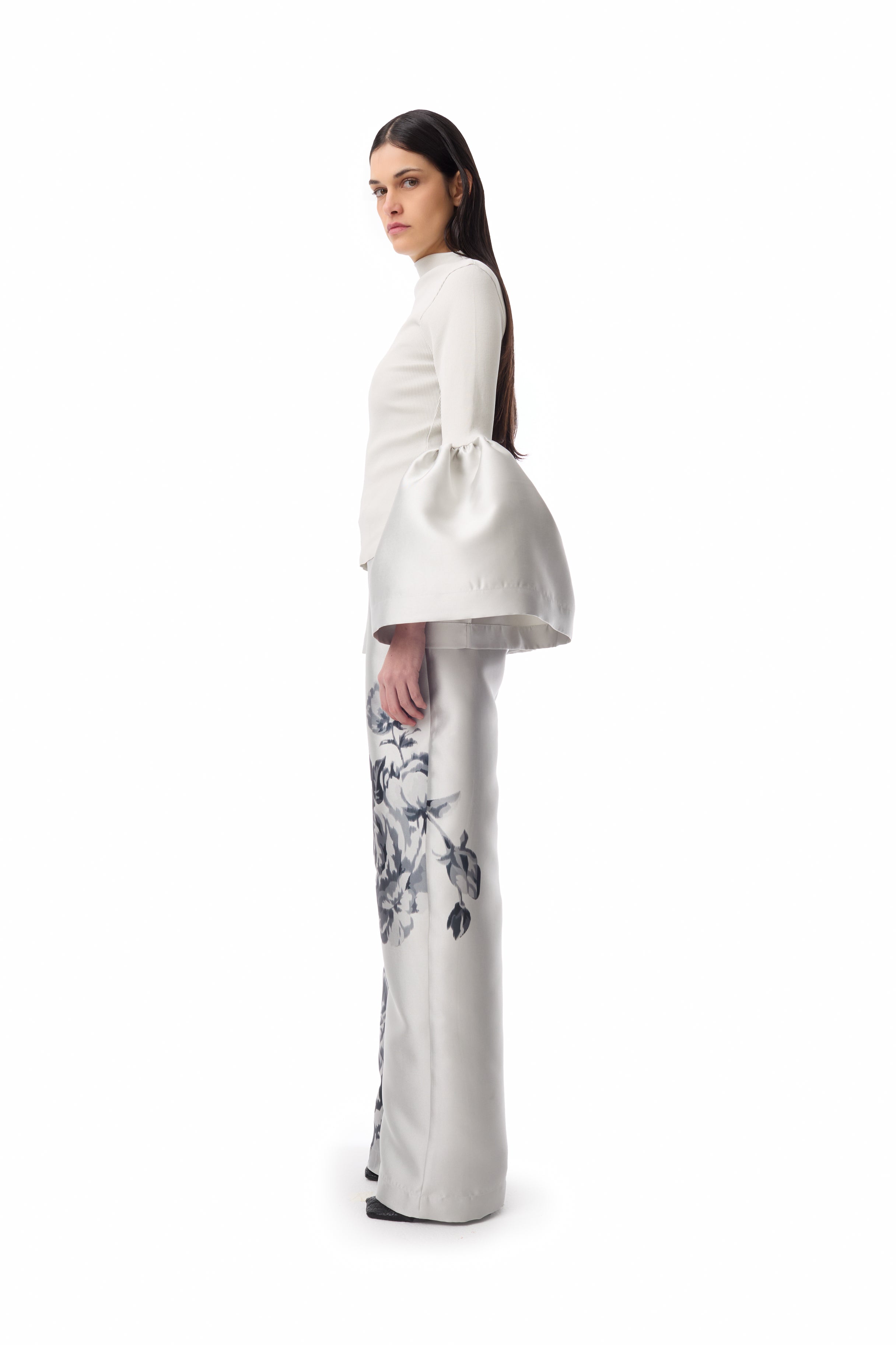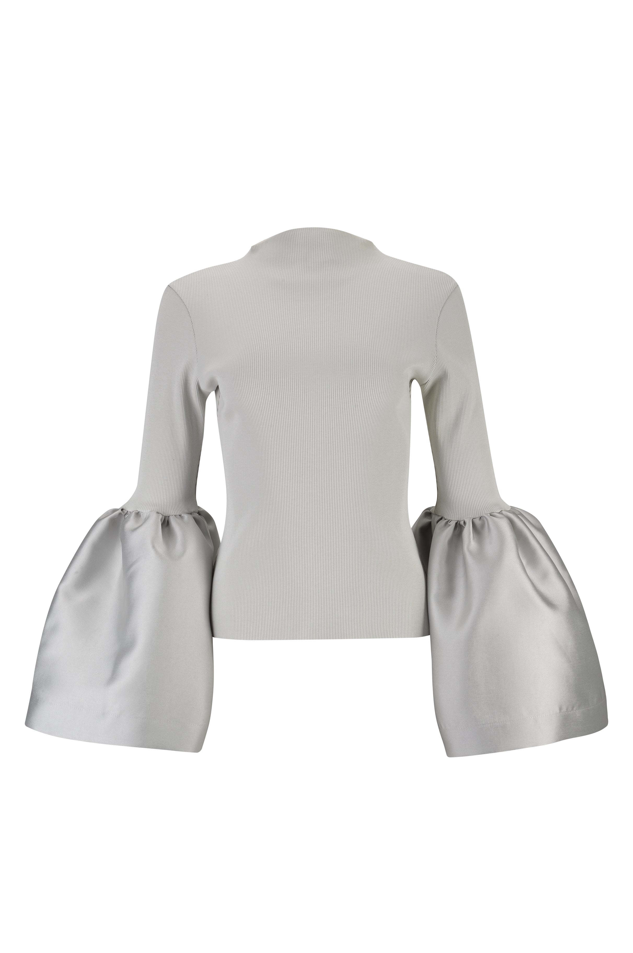 SILVER TURTLENECK PUFF SLEEVE TOP