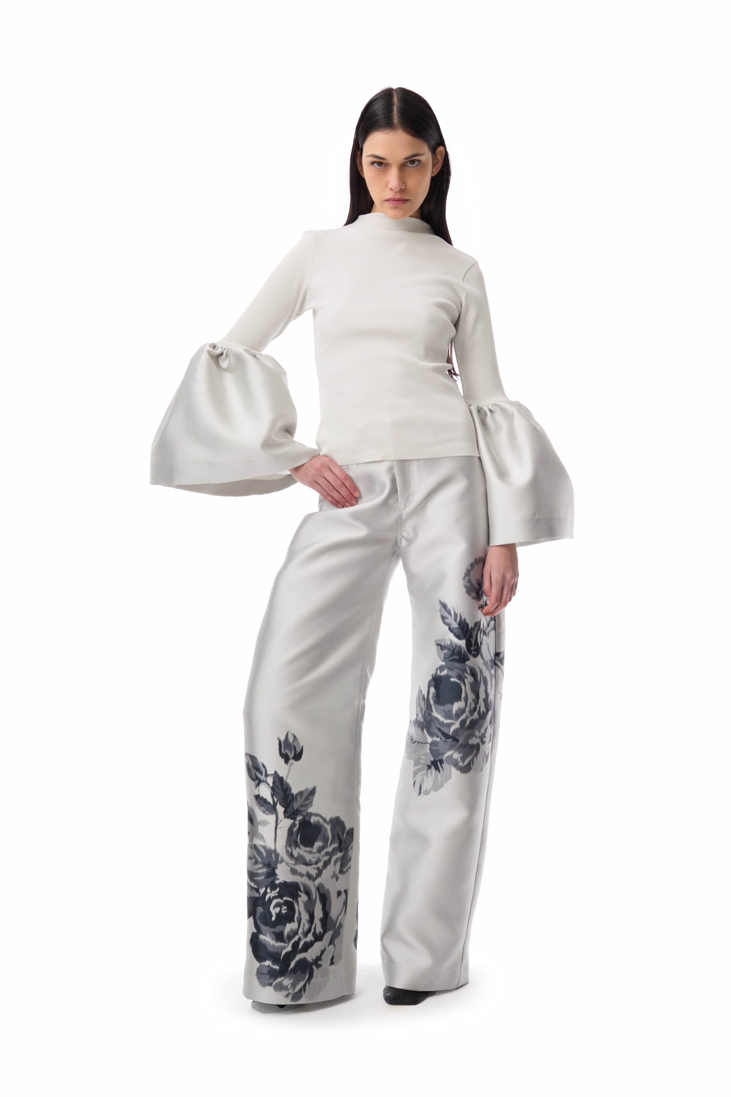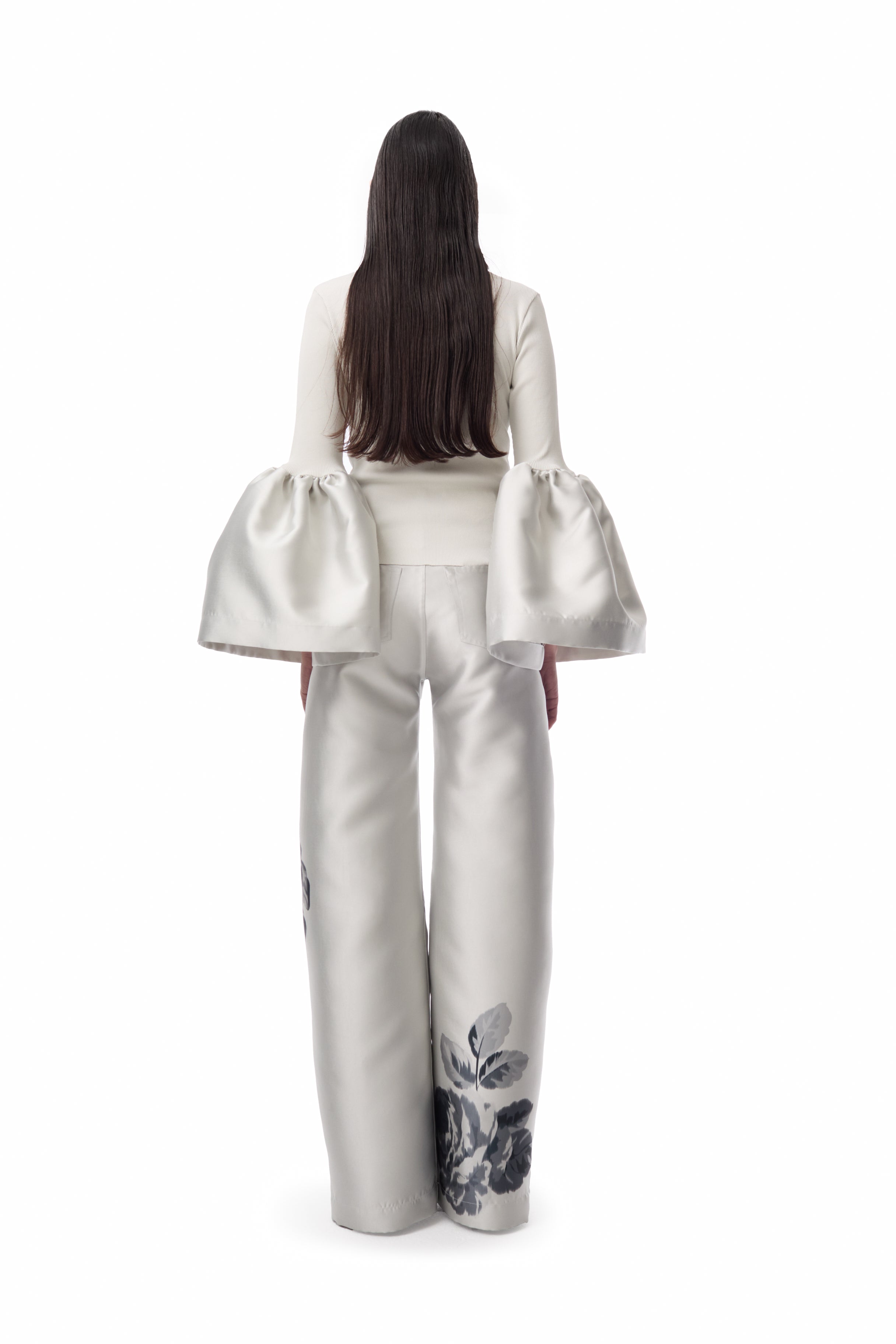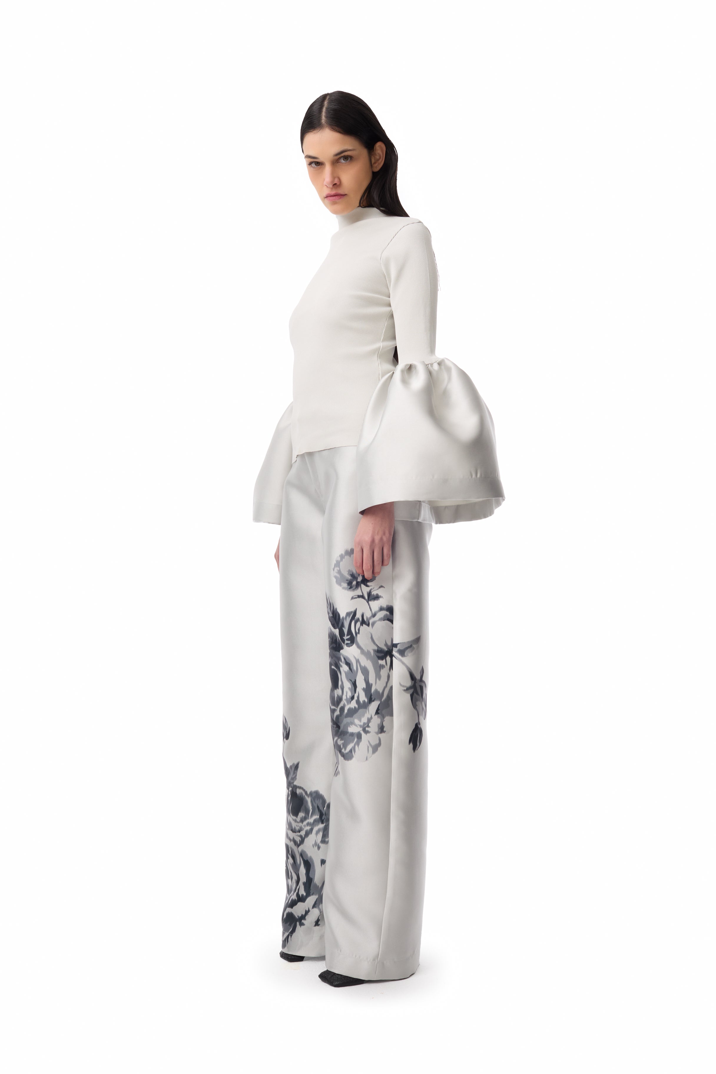 SILVER TURTLENECK PUFF SLEEVE TOP
