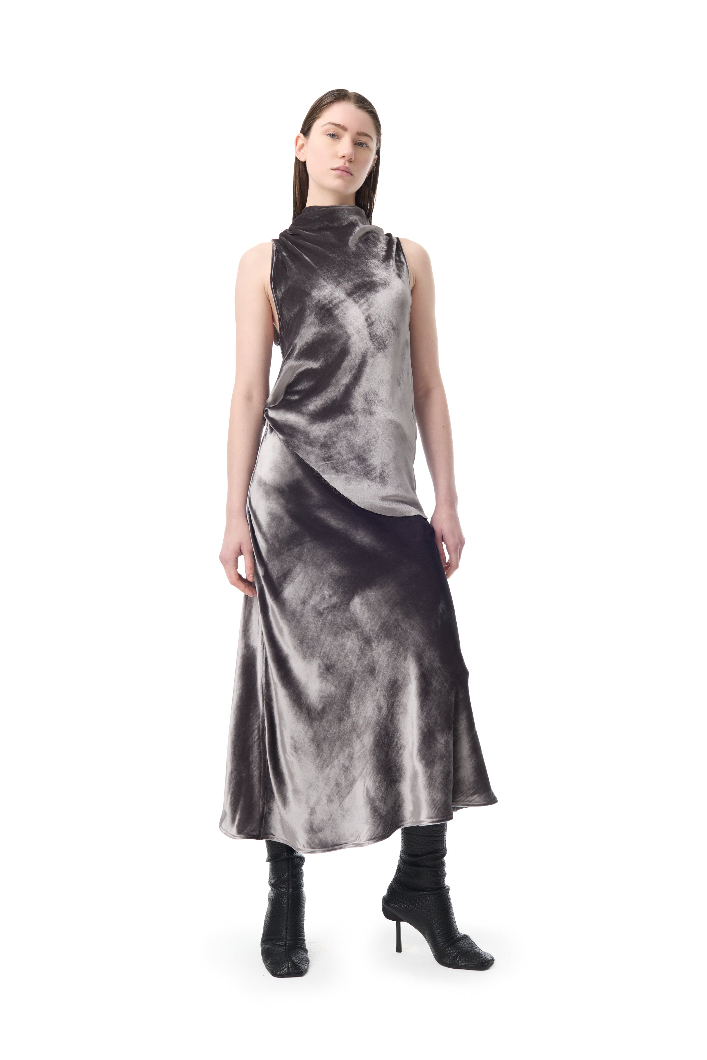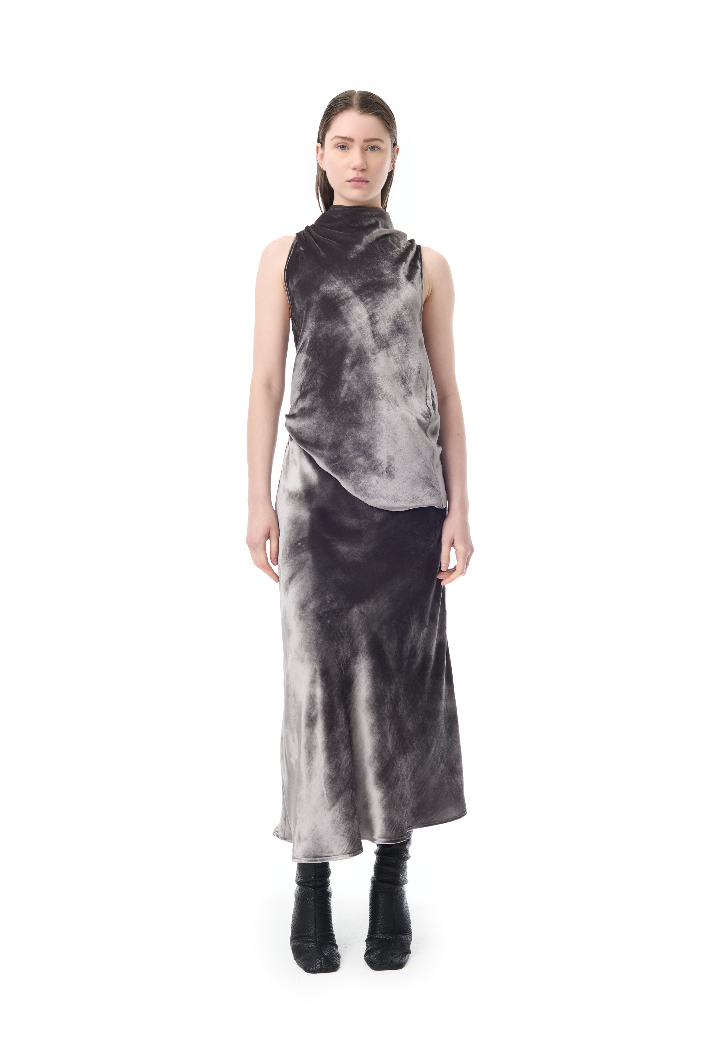 SILVER VELVET BIAS MIDI SKIRT