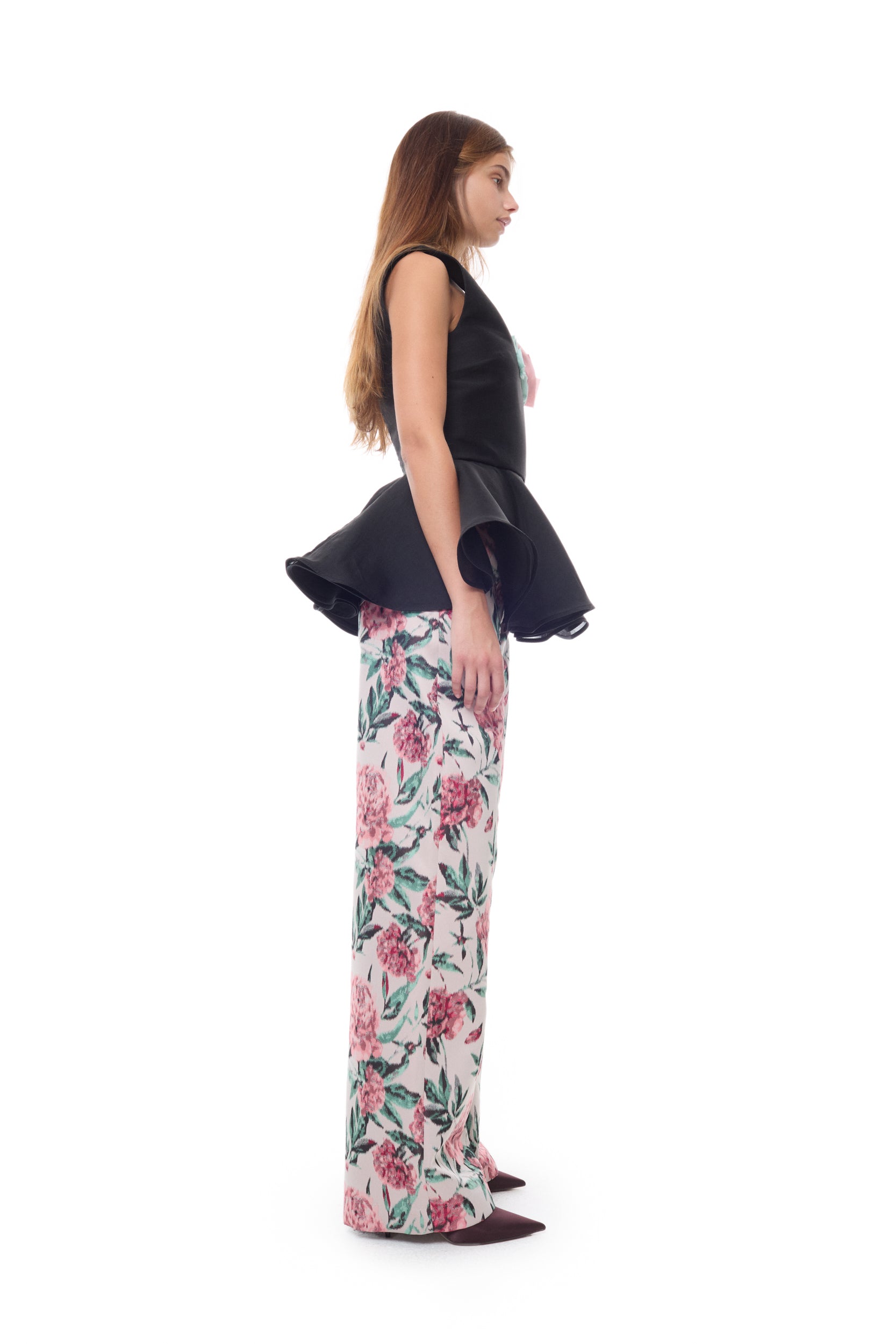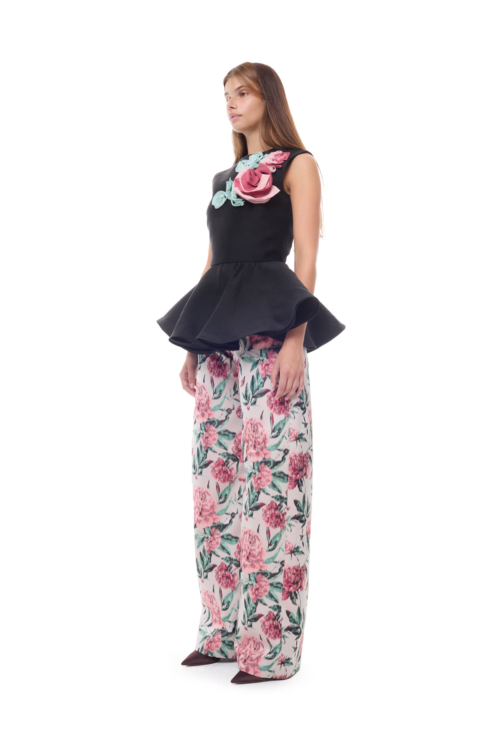 BLACK TOP WITH COLOUR FLOWER EMBELLISHED