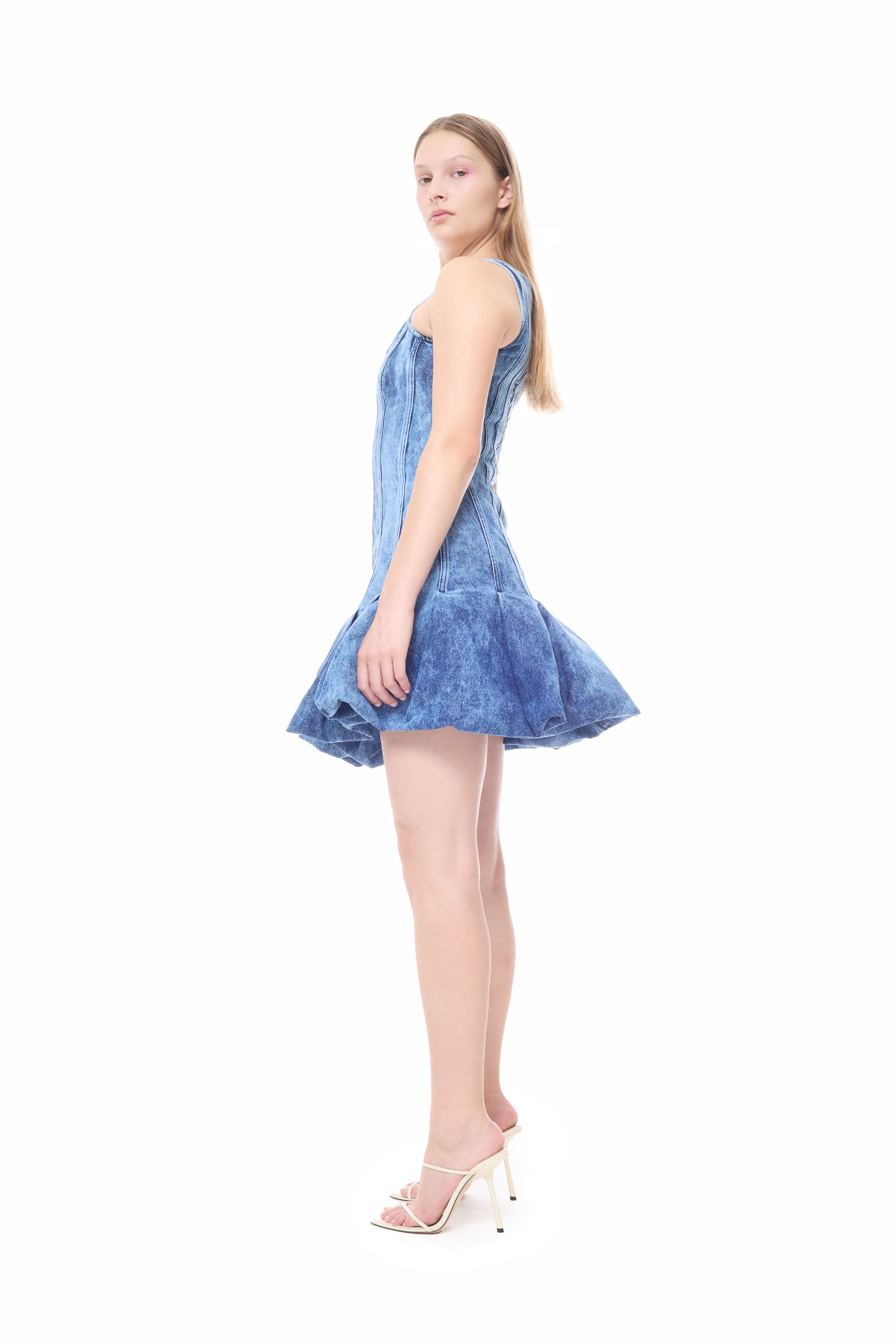 BLUE ACID WASH DENIM SLEEVELESS MINI DRESS
