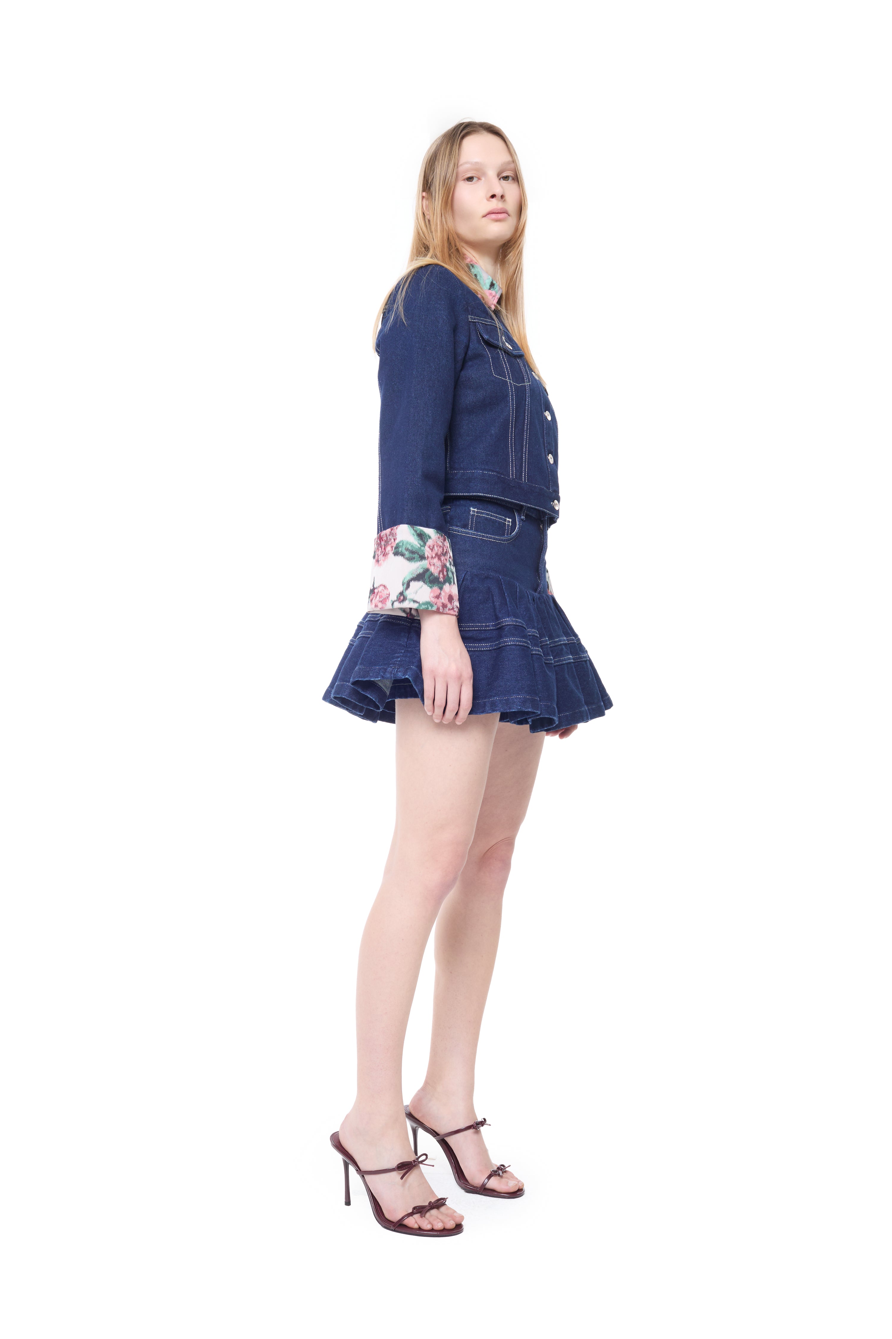 INDIGO DENIM FLOUNCE MINI SKIRT
