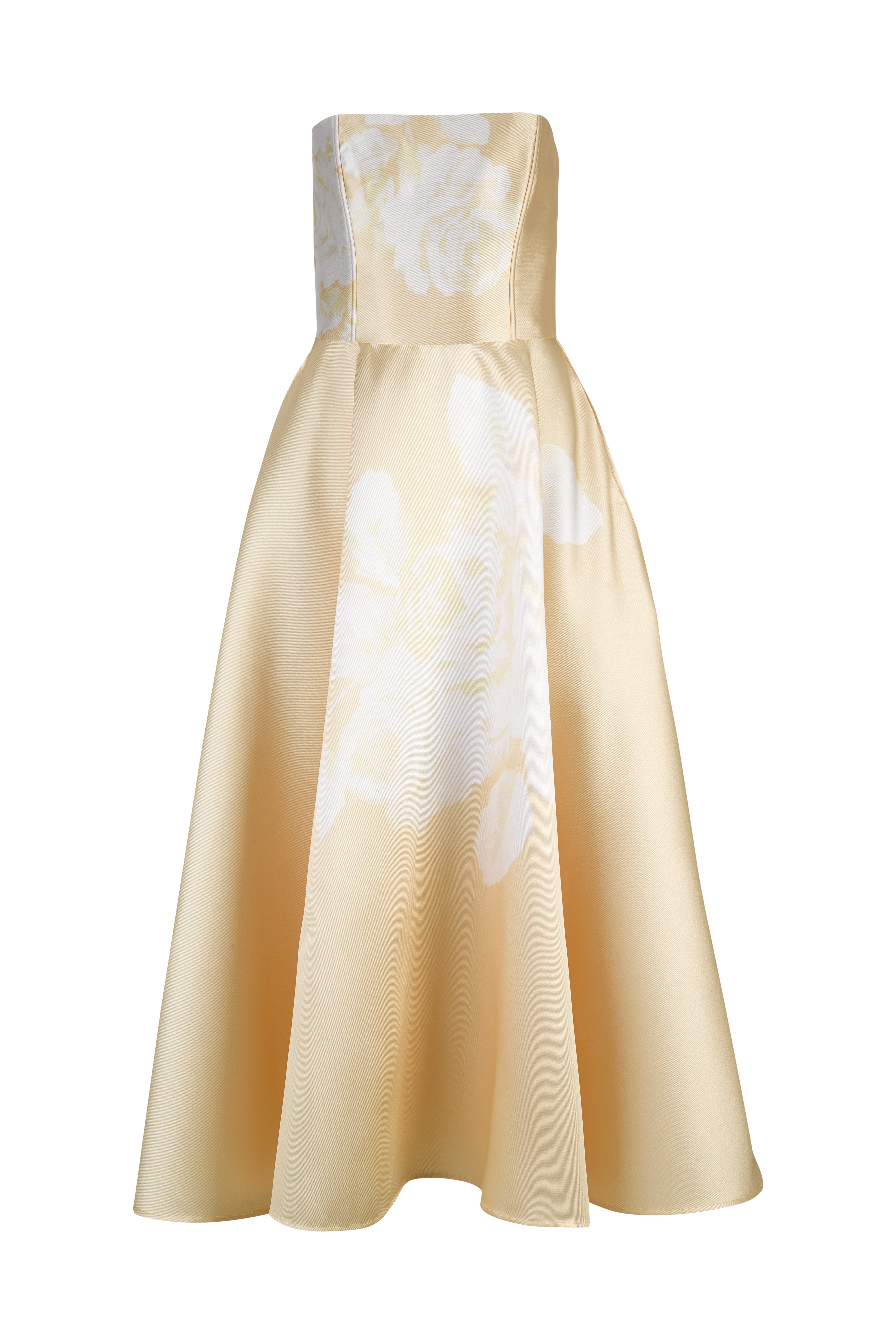 YELLOW PRINTED STRAPLESS DRESS