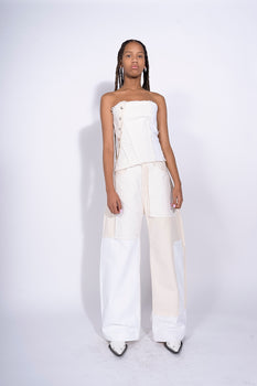 WHITE PATCHWORK BOYFRIEND TROUSERS