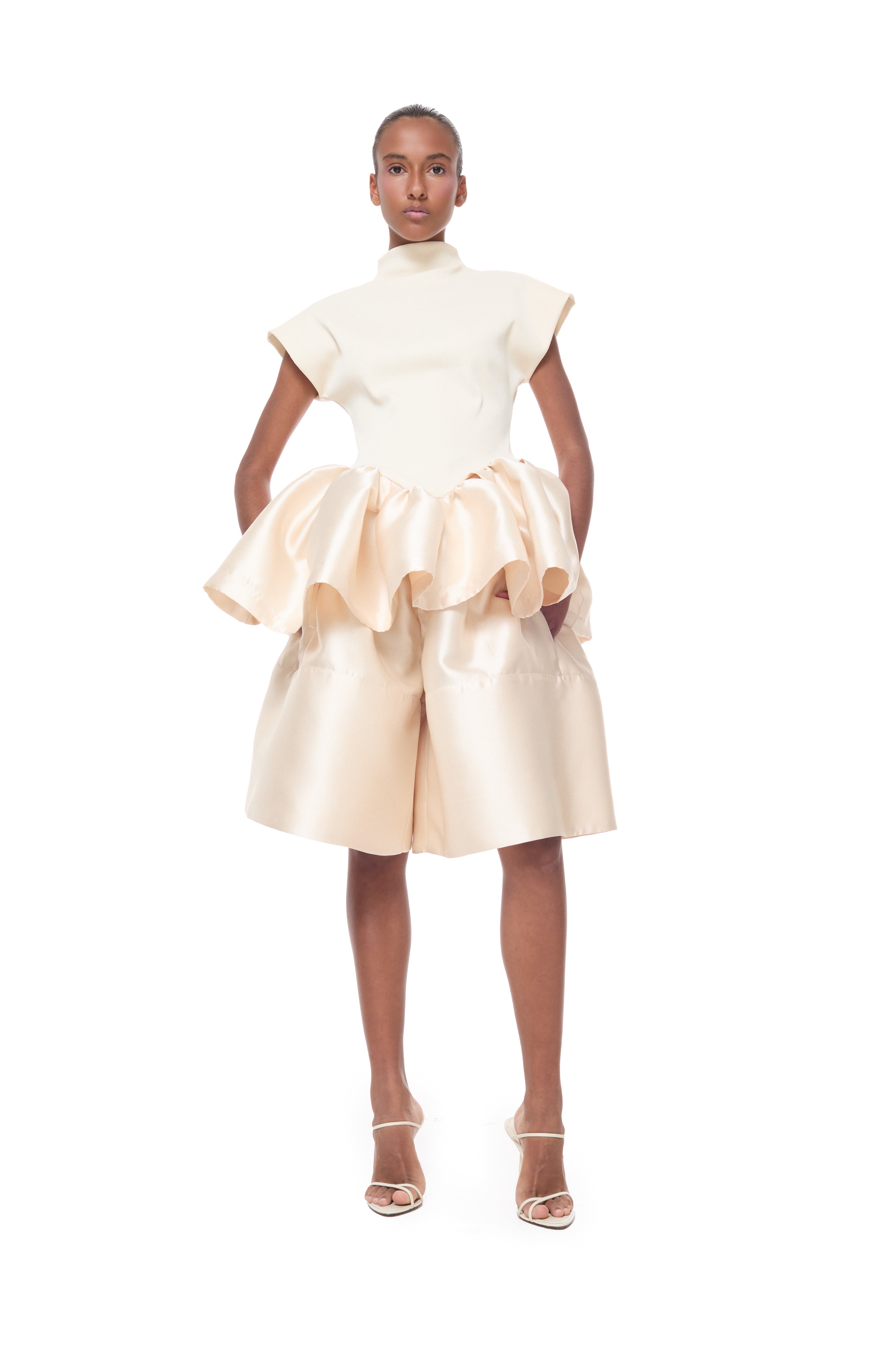 BEIGE HEAVY SATIN A-LINE VOLUME SHORTS