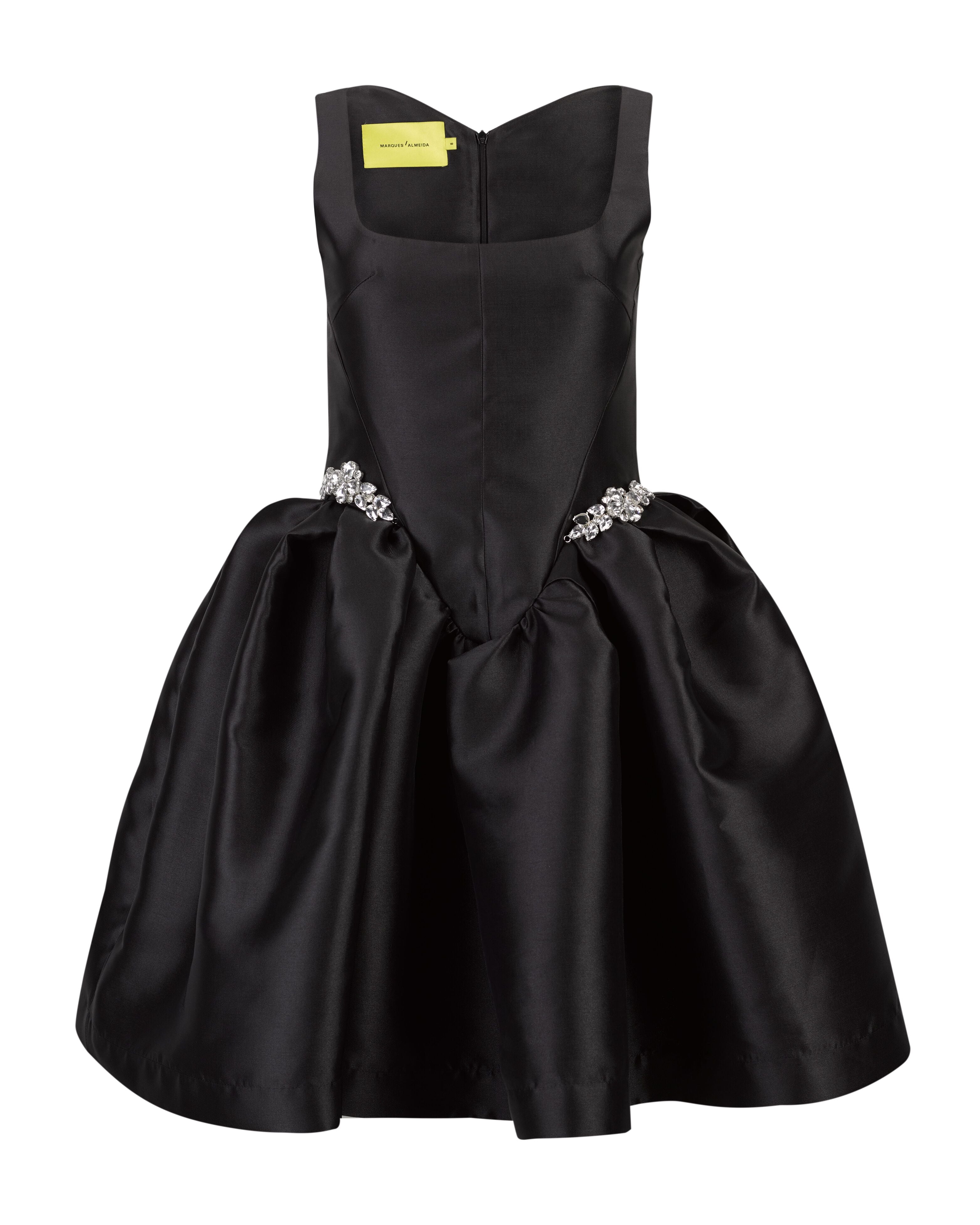 BLACK SHORT PUFF DRESS WITH EMBELLISHMENT