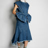 DENIM SWIRL SKIRT WITH EMBELLISHMENT BELT