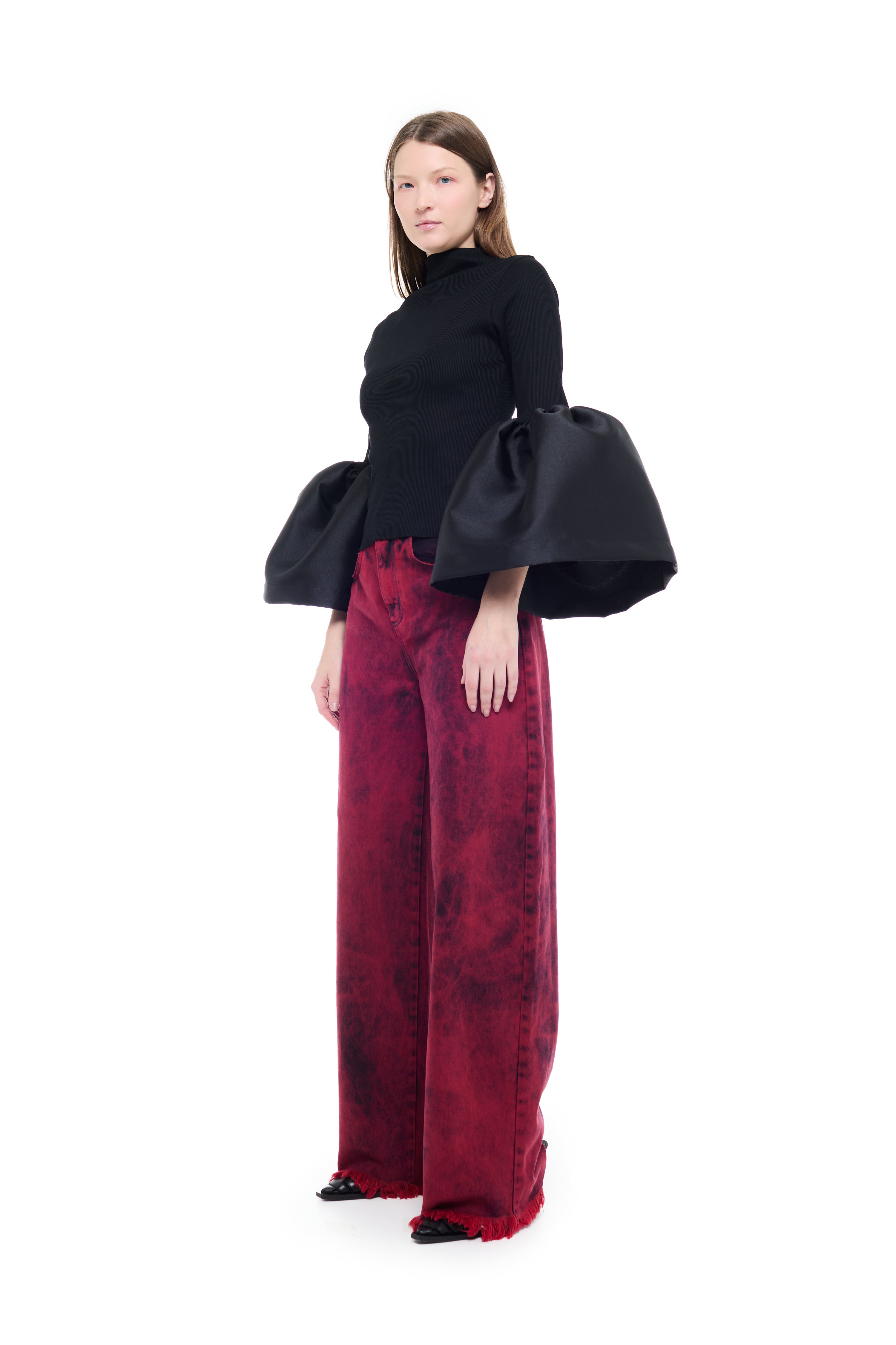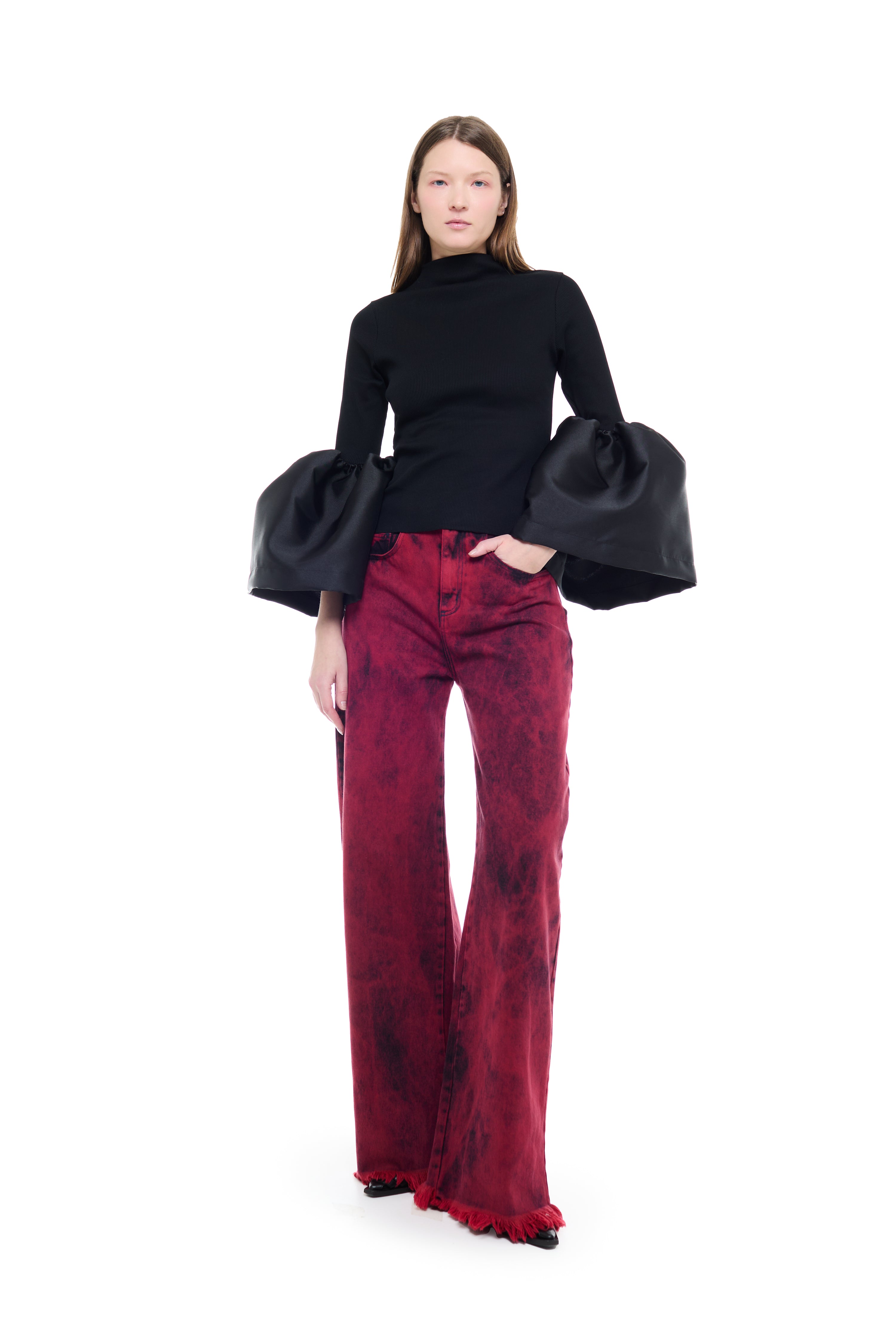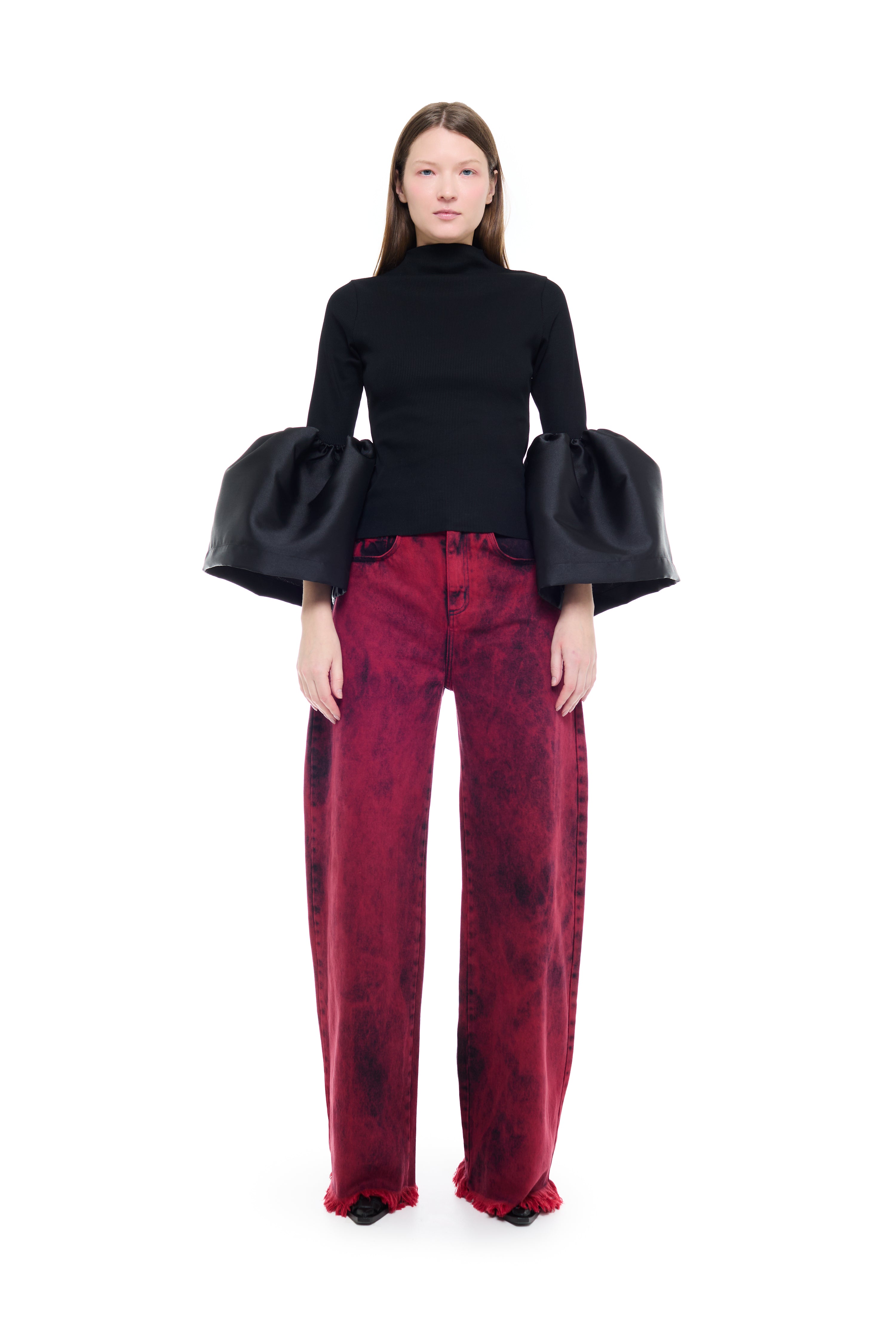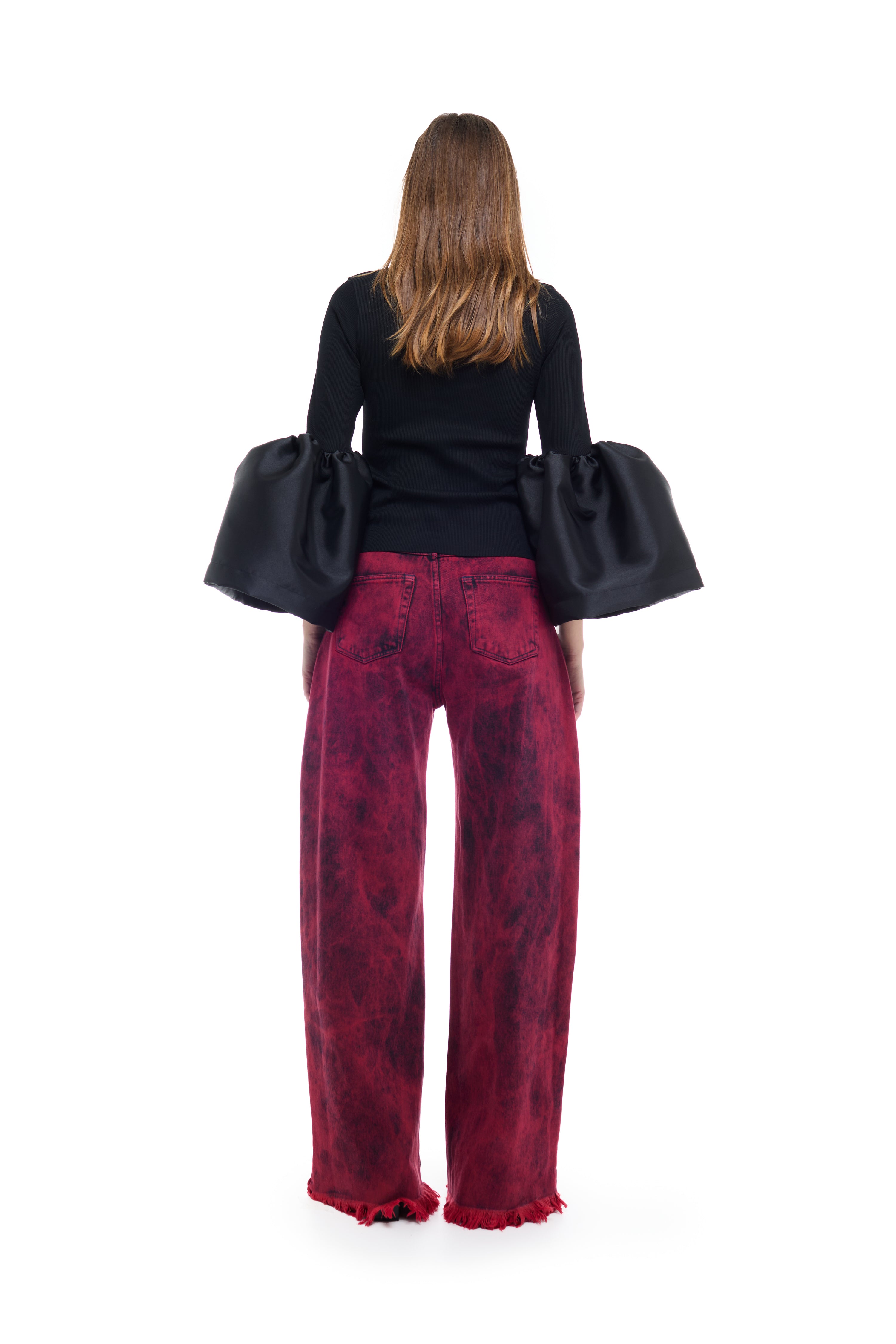RED OVERDYE DENIM BOYFRIEND TROUSERS