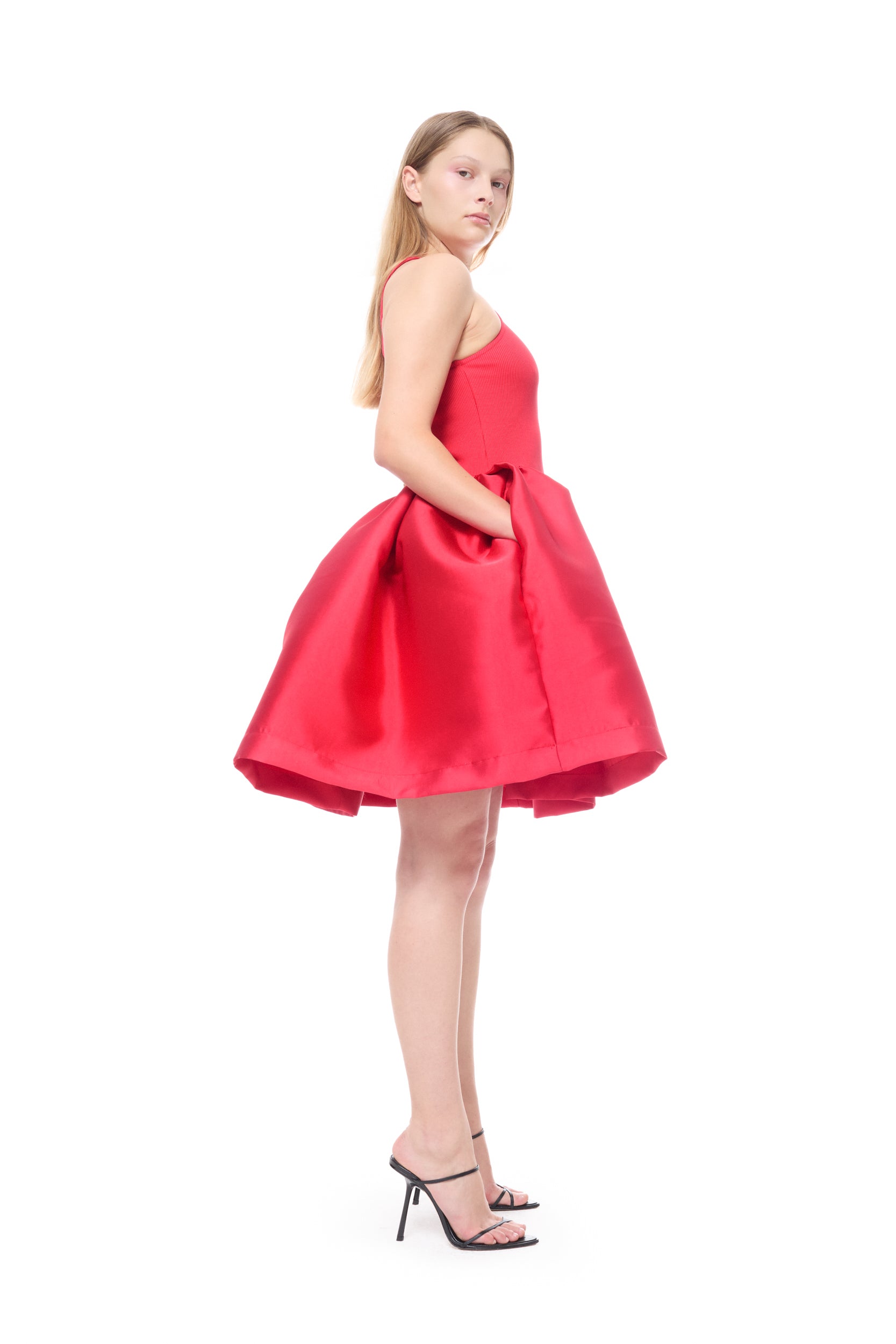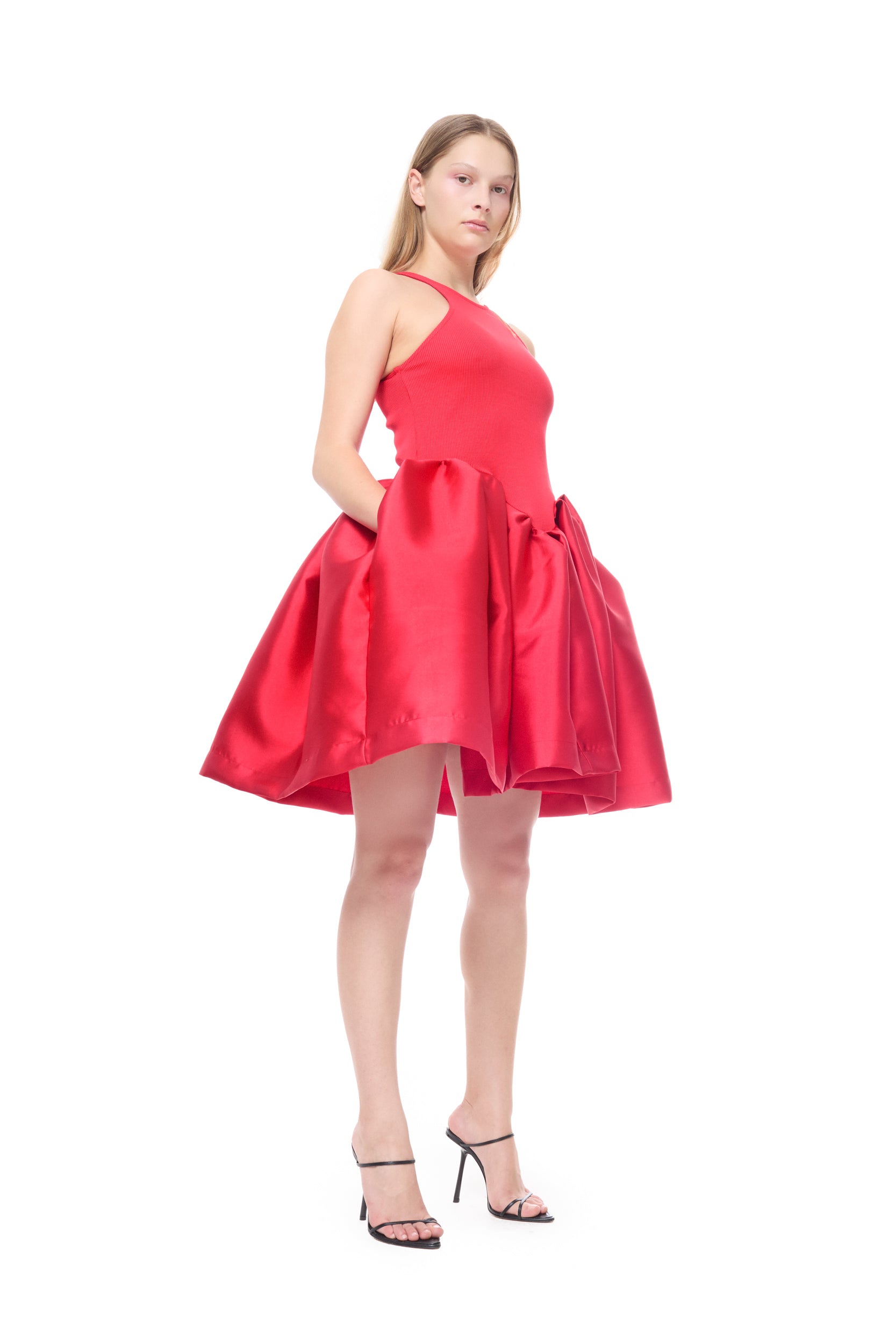 RED MINI DRESS WITH TANK TOP SCOOPED