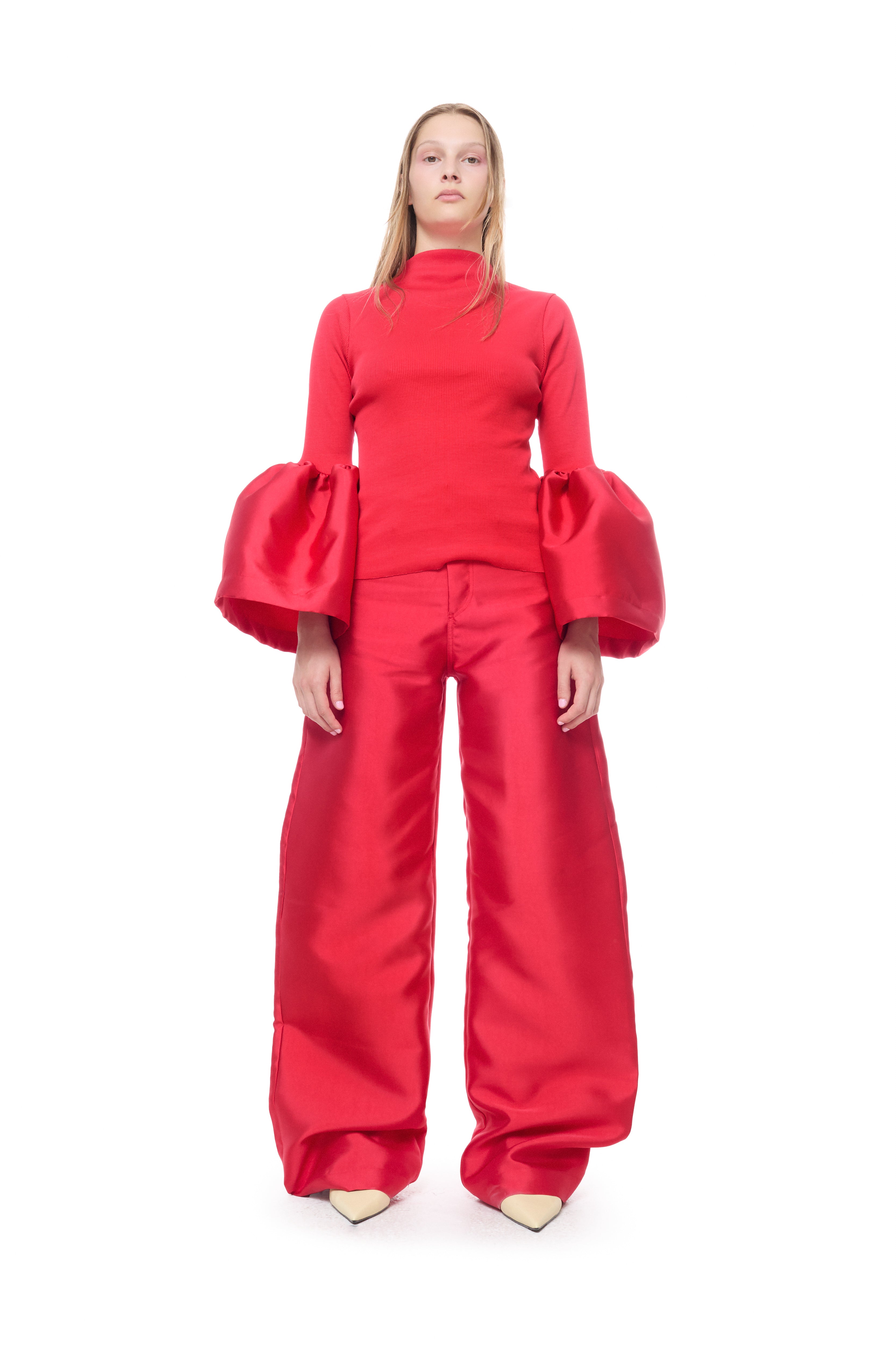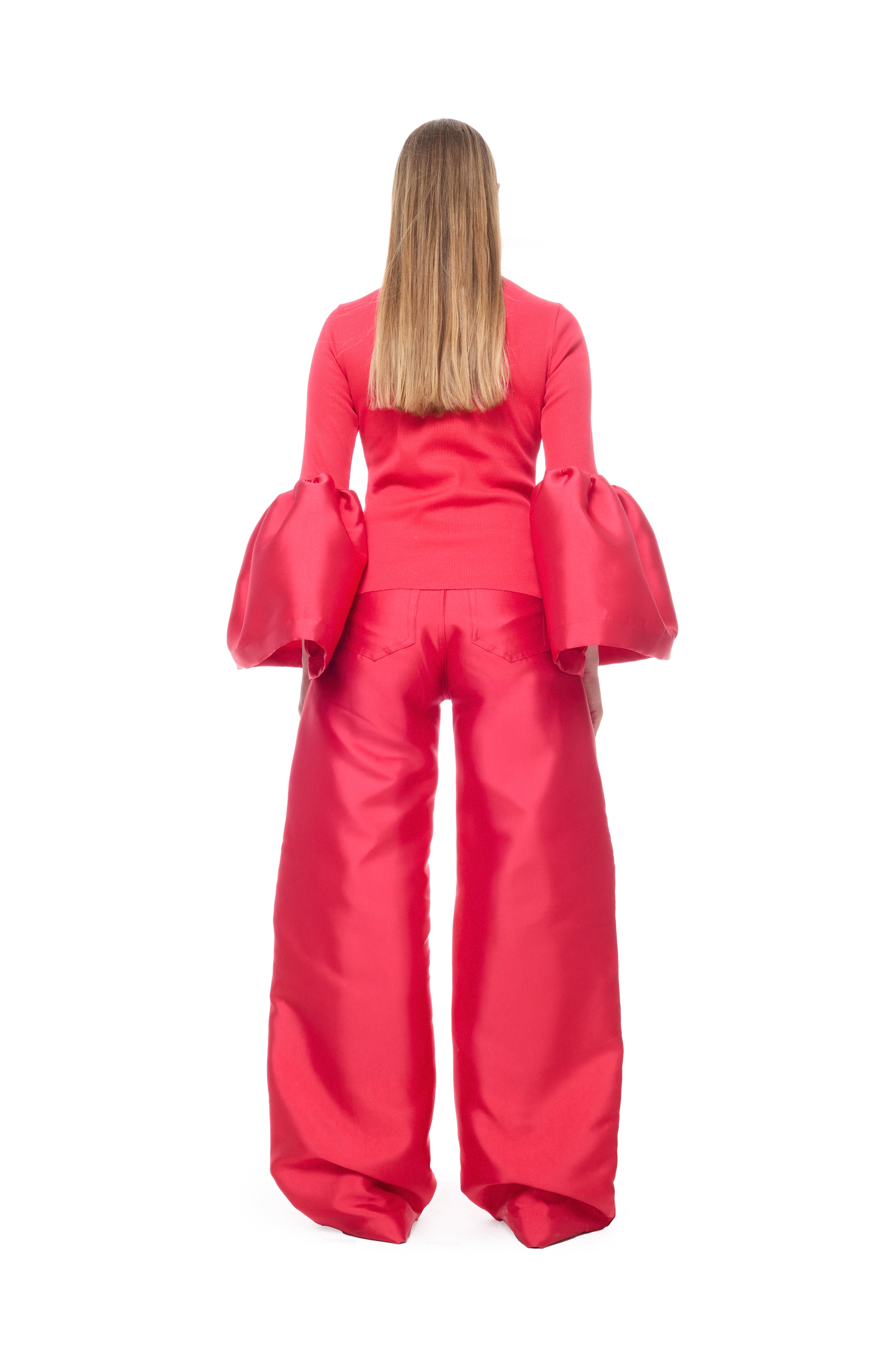RED MIKADO BOYFRIEND TROUSERS